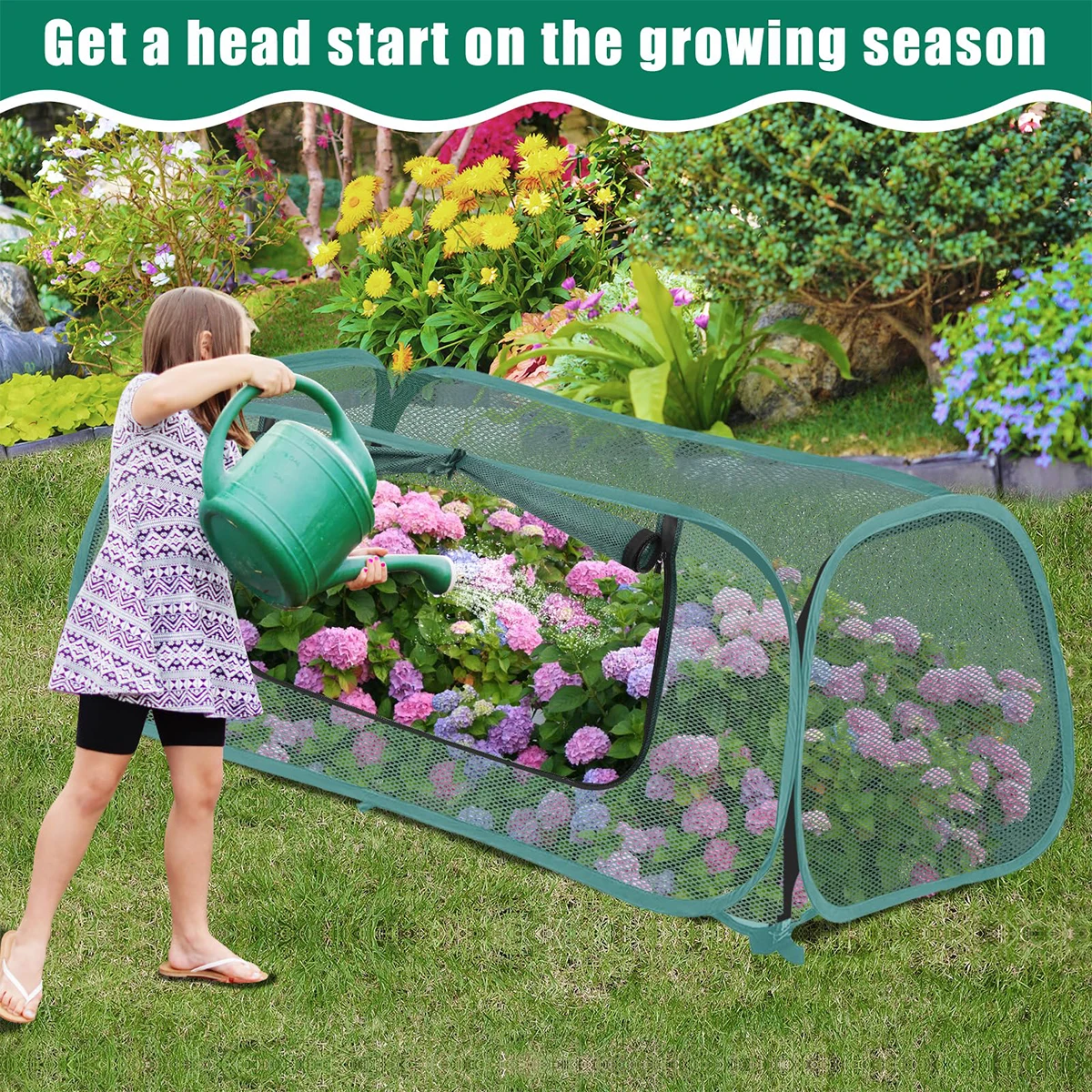 【YEAR-ROUND, MULTI-LOCATION DEFENSE】: Ideal for raised beds, in-ground rows, patios or market-garden plots. The cover acts as a mini greenhouse for cool spring and autumn nights, while the mesh barrier blocks birds, insects, rabbits and curious pets—delivering consistent, chemical-free protection for every stage of plant growth